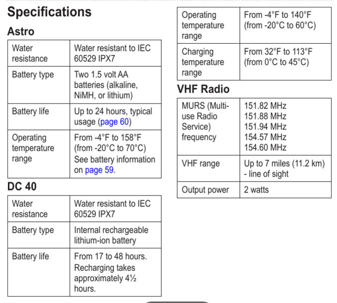 Рабочие частоты Гармин Астро/Альфа: